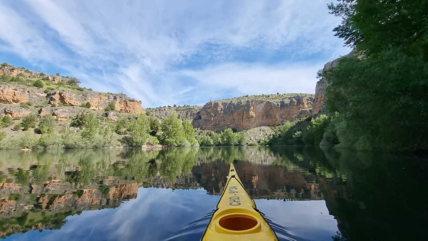 El piragüismo en el Río Duratón permite adentrarse en uno de los espacios naturales más emblemáticos de Castilla y León desde una perspectiva privilegiada. A lo largo del recorrido, el río discurre entre impresionantes cañones de roca caliza, creando un paisaje espectacular que solo puede apreciarse plenamente desde el agua. Esta experiencia combina actividad física suave, contacto directo con la naturaleza y momentos de calma difíciles de encontrar en otros entornos.
